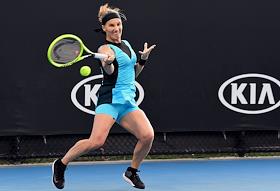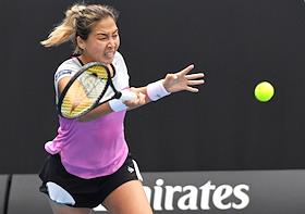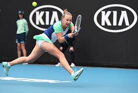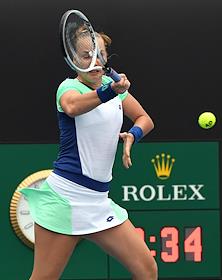 Теннисный турнир Australian Open - 2020. День четвертый. Казахская теннисистка Зарина Дияс во время матча с российской теннисисткой Анны Блинковой.