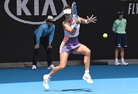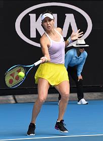Теннисный турнир Australian Open - 2020. День четвертый. Латвийская теннисистка Елена Остапенко во время матча с швейцарской теннисисткой Белиндой Бенчич.