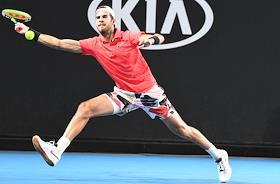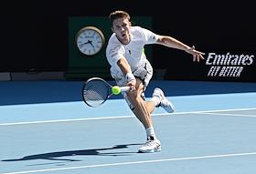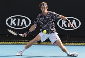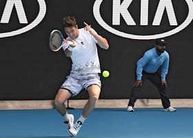 Теннисный турнир Australian Open - 2020. День четвертый. Испанский теннисист Педро Мартинес во время матча с российским теннисистом Даниилом Медведевым.