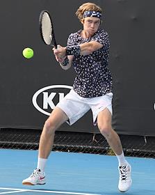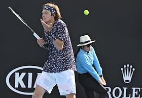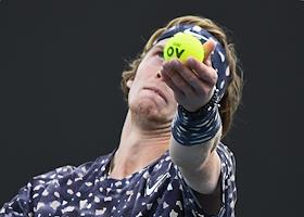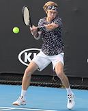 Теннисный турнир Australian Open. День четвертый. Российский теннисист Андрей Рублев во время матча против японского теннисиста Юити Сугита.