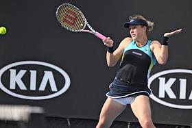 Теннисный турнир Australian Open - 2020. День четвертый. Швейцарская теннисистка Белинда Бенчич во время матча с латвийской теннисисткой Елена Остапенко.