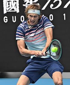 Теннисный турнир Australian Open. День четвертый. Немецкий теннисист Александр Зверев во время матча против белорусского теннисиста Егора Герасимова.