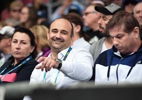 Теннисный турнир Australian Open - 2020. День четвертый. Команда российской теннисистки Анны Блинковой - мама (слева), менеджер Стефан Гуров (в центре) и тренер Владо Платеник (справа) на трибуне во время матча.