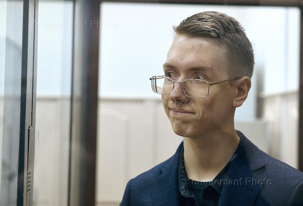 Студент Московского авиационного университета Андрей Баршай, обвиняемый в нападении на сотрудника Росгвардии в Москве во время митинга 27 июля 2019 года, во время заседания Басманного районного суда.