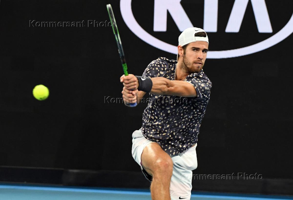 Теннисный турнир Australian Open. День шестой. Российский теннисист Карен Хачанов во время матча с австралийским теннисистом Никоа Кирьосом.