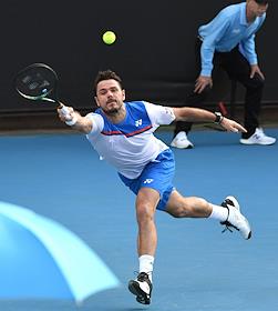 Теннисный турнир Australian Open. День шестой. Швейцарский теннисист Станислас Вавринка во время матча с американским теннисистом Джоном Иснером.