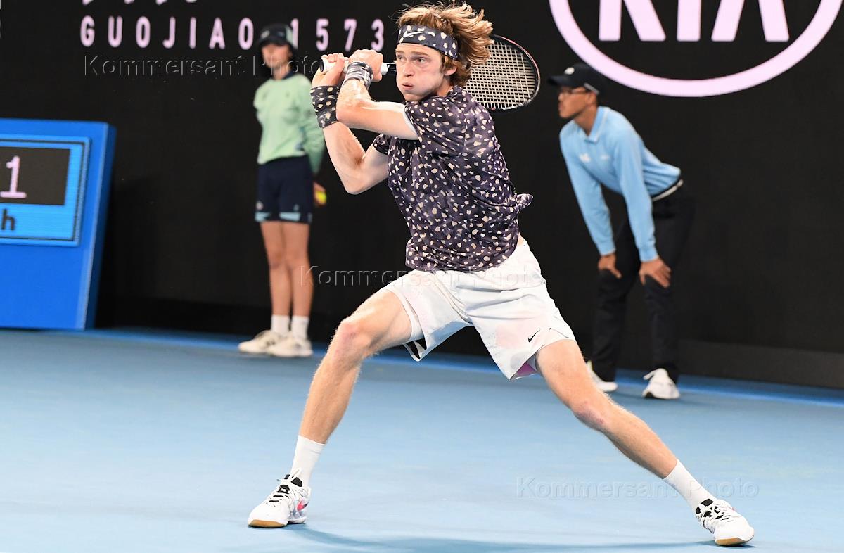 Теннисный турнир Australian Open, день восьмой. Российский теннисист Андрей Рублев во время матча с немецким теннисистом Александром Зверевым.