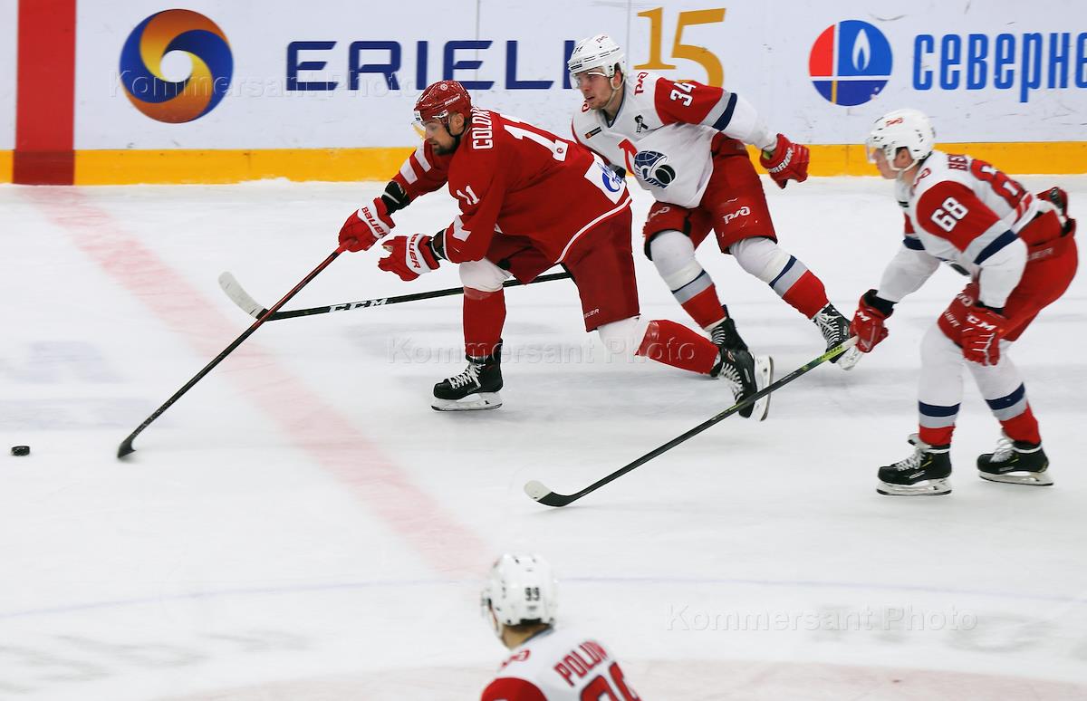 Чемпионат Континентальной хоккейной лиги (КХЛ). Матч между командами "Витязь" (Московская область, Подольск) и "Локомотив" (Ярославль) на ледовой арене "Витязь".