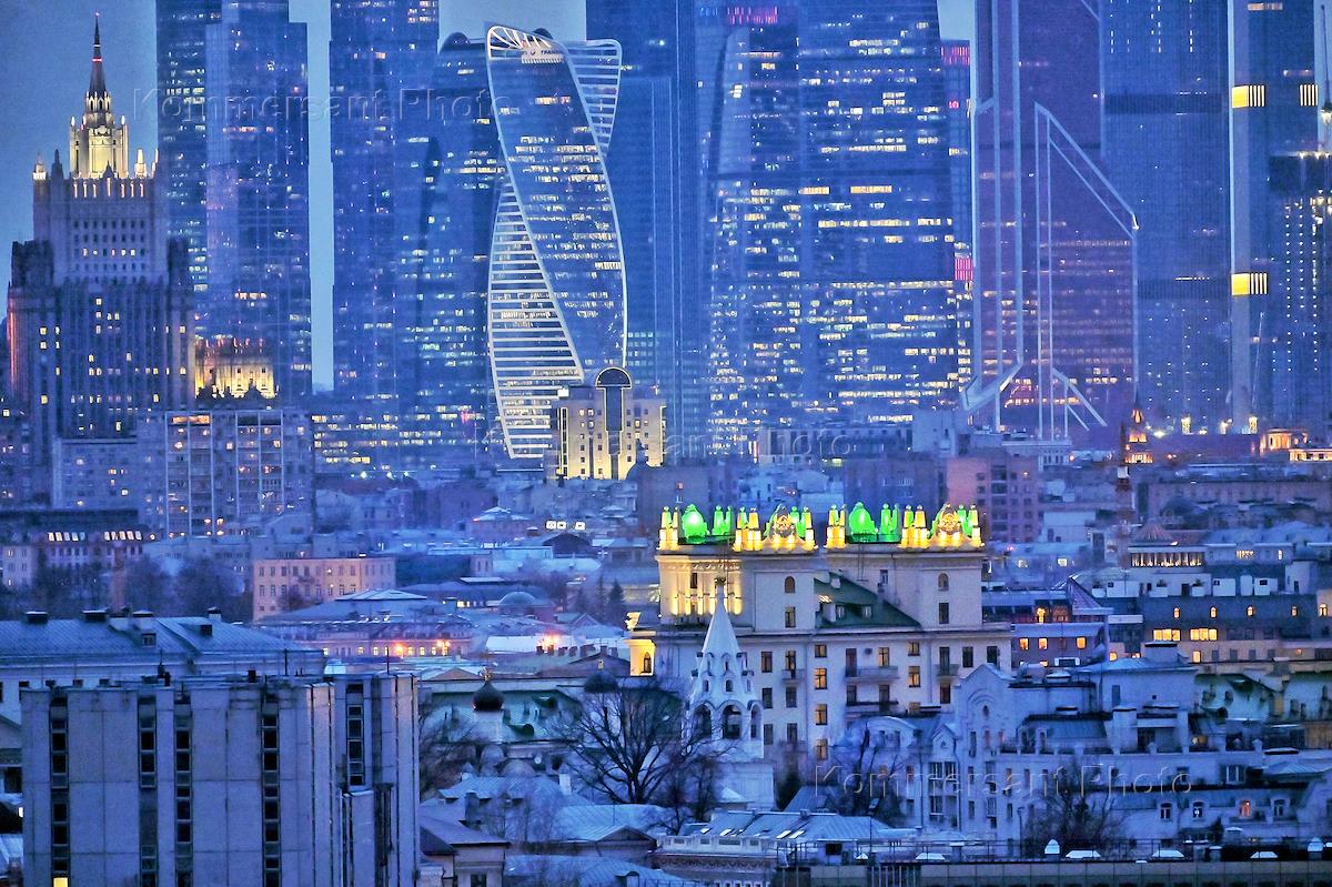 Genre photo. Views of Moscow. Evening illumination of the Moscow International Business Center.