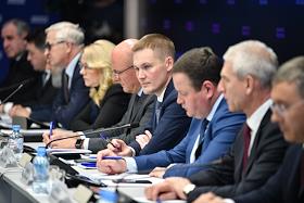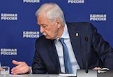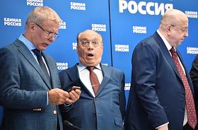 Расширенное заседание бюро высшего совета партии "Единая Россия". Заместитель председателя комитета Государственной думы России по государственному строительству и законодательству Александр Грибов (в центре) во время заседания.
