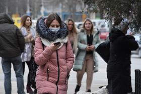 Жанровая фотография. Девушка в медицинской маске на улице.