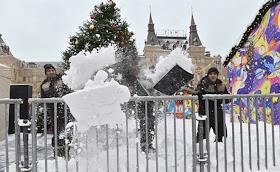 Жанровая фотография. Сотрудники коммунальных служб города убирают снег на Красной площади.