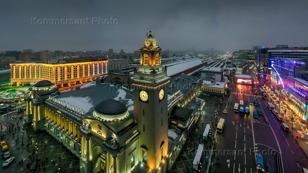 Жанровая фотография. Часы на башне на площади Киевского вокзала.