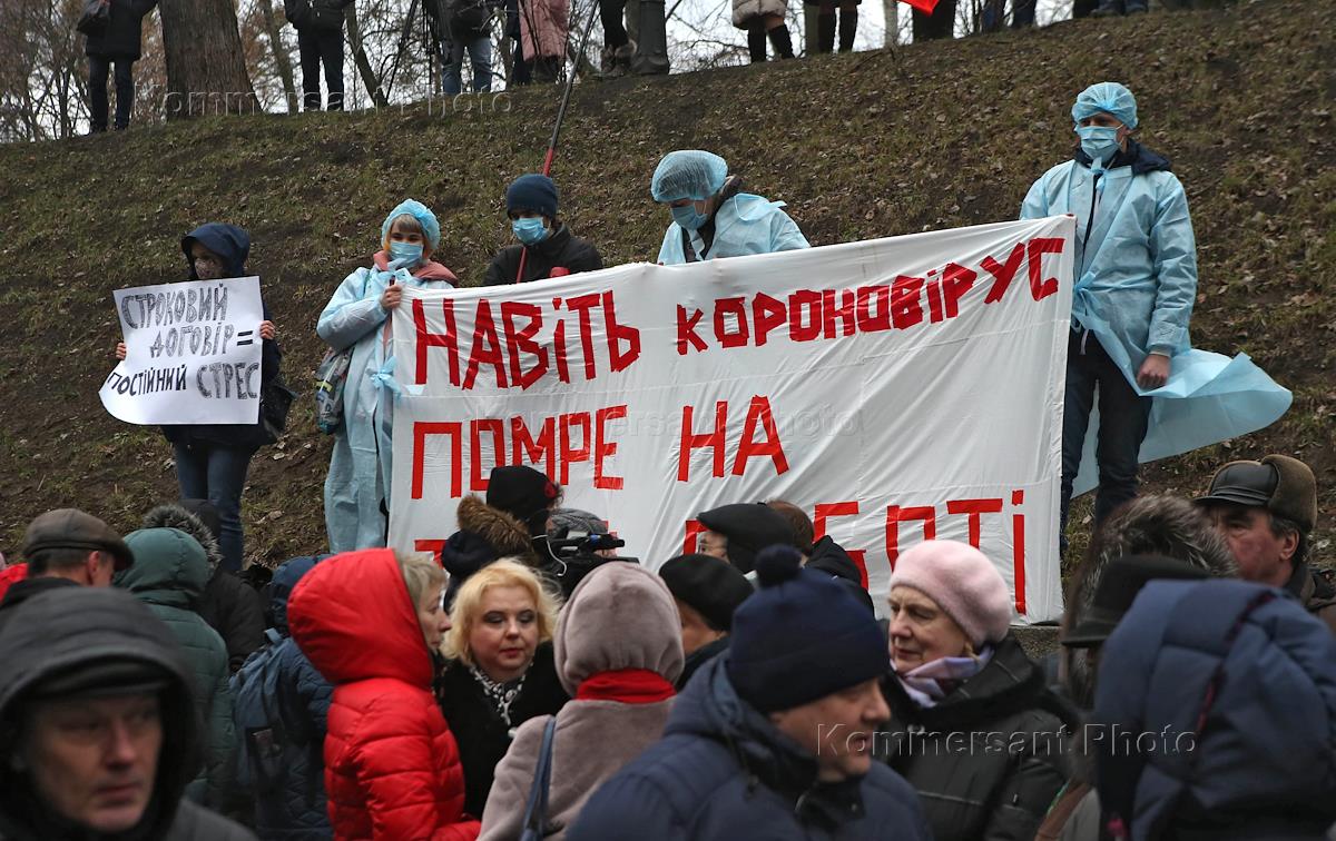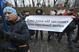 Participants of the Wave of Anger protest rally against the new labor law was held by the Ukrainian Federation of Trade Unions in front of the Cabinet of Ministers of Ukraine.