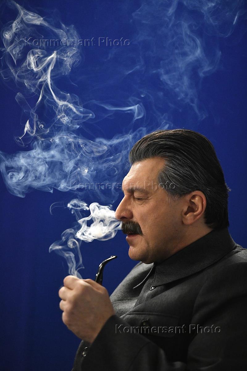 Съемки короткометражных фильмов-реконструкций для мультимедийной экспозиции "Подвиг народа" в Музее Победы. Актер Леван Мсхиладзе в роли Иосифа Сталина на съемочной площадке во время съемки короткометражного фильма-реконструкции "Государственный комитет обороны".