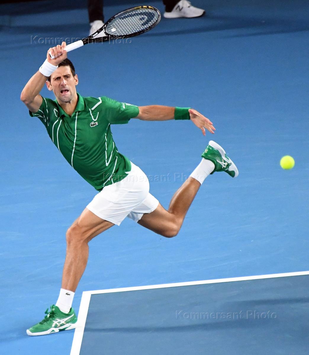 Теннисный турнир Australian Open. День одиннадцатый. Сербский теннисист Новак Джокович во время матча со швейцарским теннисистом Роджером Федерером.