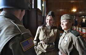 Мероприятия, посвященные 75-летию Ялтинской конференции 1945 года в Ливадийском дворце. Участники мероприятий в военной форме времен Великой Отечественной войны.