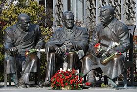 Мероприятия, посвященные 75-летию Ялтинской конференции 1945 года в Ливадийском дворце. Памятник руководителям СССР, США и Великобритании на площади перед дворцом.