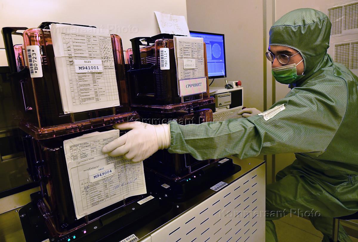 PAO "Mikron" (Russian manufacturer and exporter of microelectronic products). Laboratory staff at work.