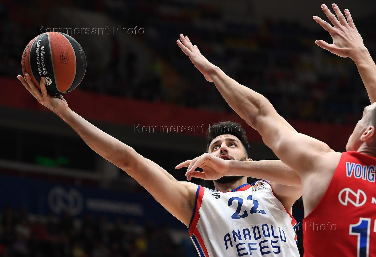 Евролига по баскетболу. Матч между командами ЦСКА (Москва, Россия) - "Анадолу Эфес" (Стамбул, Турция) на арене "Мегаспорт". Игрок команды ЦСКА Йоханнес Фойгтман (в центре) во время матча.