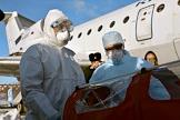 Учения по медицинской эвакуации пассажиров с подозрением на коронавирус в Международном аэропорту Челябинск (Баландино) имени И.В. Курчатова.