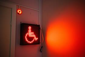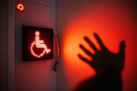 Жанровая фотография. Рука на фоне электронного знака "Инвалид".