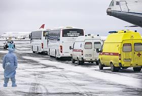 Эвакуация россиян из Китая в связи с распространением коронавирусной инфекции. Пассажиры возле самолета на летном поле международного аэропорта Тюмень (Рощино) имени Д.И. Менделеева.