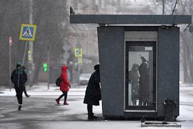 Жанровая фотография. Снегопад в Москве. Торговый павильон по продаже прессы в городе.