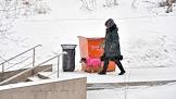 Жанровая фотография. Снегопад в Москве. Сотрудник коммунальной службы города во время уборки снега с тротуара.