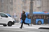 Виды Москвы во время снегопада. Жанровые фотографии. Дорожное движение на улицах города.