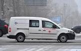 Жанровая фотография. Снегопад в Москве. Заснеженный автомобиль со знаком "Инвалид" на парковке в центре города.