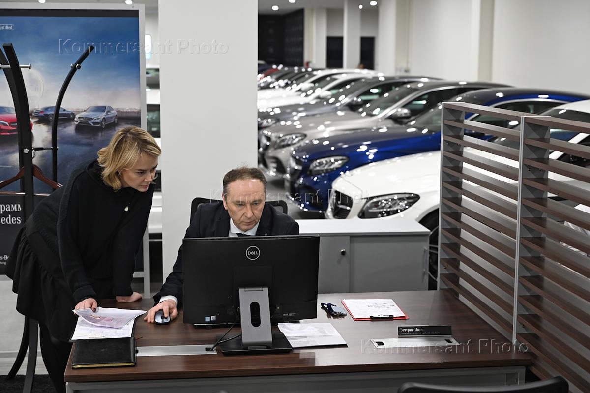 Жанровая фотография. Молодой мужчина в деловом костюме возле каршерингового автомобиля сервиса поминутной аренды автомобилей "Делимобиль".