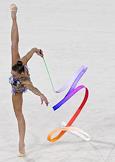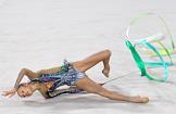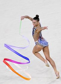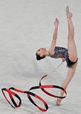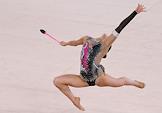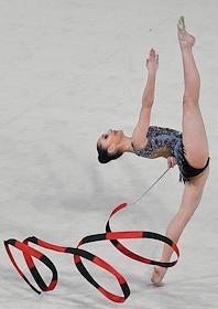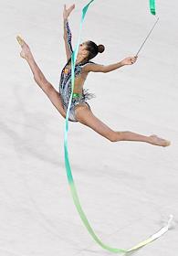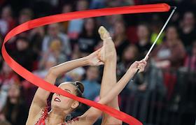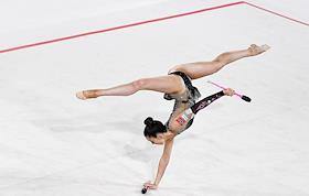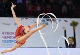 Международный турнир по художественной гимнастике – "Гран-при Москва 2020" во "Дворце гимнастики Ирины Винер-Усмановой" в Лужниках. Гимнастка из Словении Екатерина Веденеева во время исполнения упраждения с лентой.