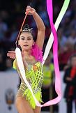 Международный турнир по художественной гимнастике – "Гран-при Москва-2020" во "Дворце гимнастики Ирины Винер-Усмановой" в Лужниках. Российская гимнастка Лала Крамаренко во время упражнения с лентой.
