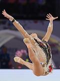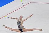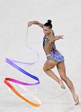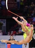 Международный турнир по художественной гимнастике – "Гран-при Москва-2020" во "Дворце гимнастики Ирины Винер-Усмановой" в Лужниках. Словенская гимнастка Екатерина Веденеева во время исполнения упражнения с лентой.