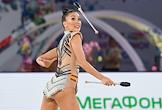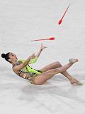 Международный турнир по художественной гимнастике – "Гран-при Москва 2020" во "Дворце гимнастики Ирины Винер-Усмановой" в Лужниках. Китайская гимнастка Ятин Жао во время исполнения упраждения с булавами.