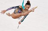 Международный турнир по художественной гимнастике – "Гран-при Москва-2020" во "Дворце гимнастики Ирины Винер-Усмановой" в Лужниках. Македонская гимнастка Рейчл Стоянова во время упражнения с лентой.