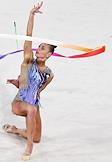 Международный турнир по художественной гимнастике – "Гран-при Москва 2020" во "Дворце гимнастики Ирины Винер-Усмановой" в Лужниках. Португальская гимнастка Рита Арауджо во время исполнения упражнения с лентой.
