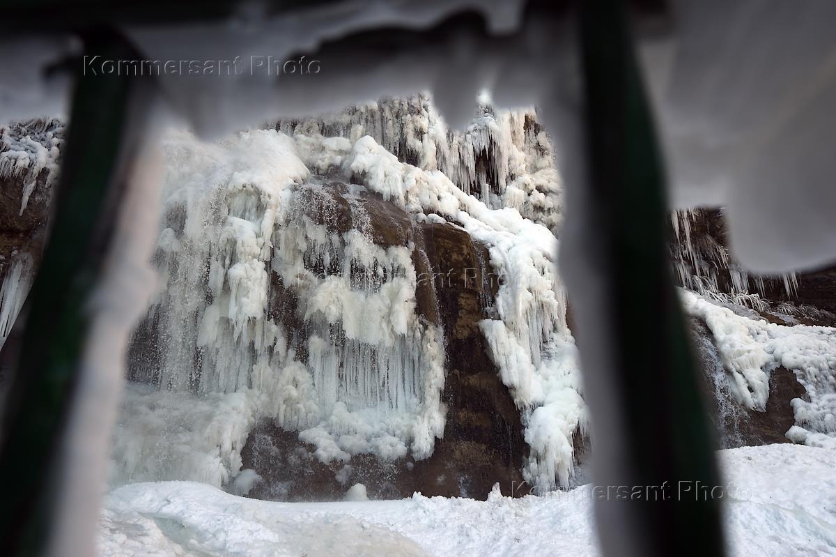 Жанровая фотография. 100-метровый водопад "Учан-Су", замерзший в результате резкого похолодания.