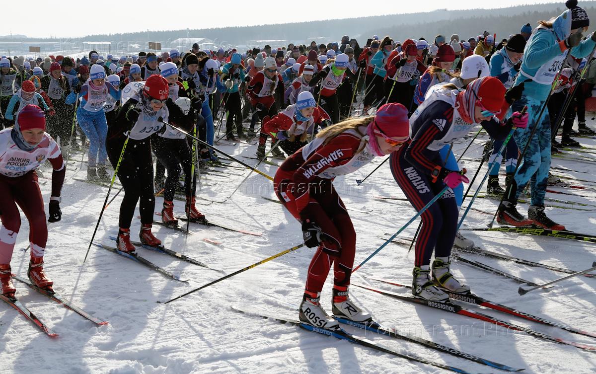 XVI региональные финальные соревнования в рамках открытой Всероссийской массовой лыжной гонки "Лыжня России - 2020". Участники соревнований во время прохождения участка трассы.