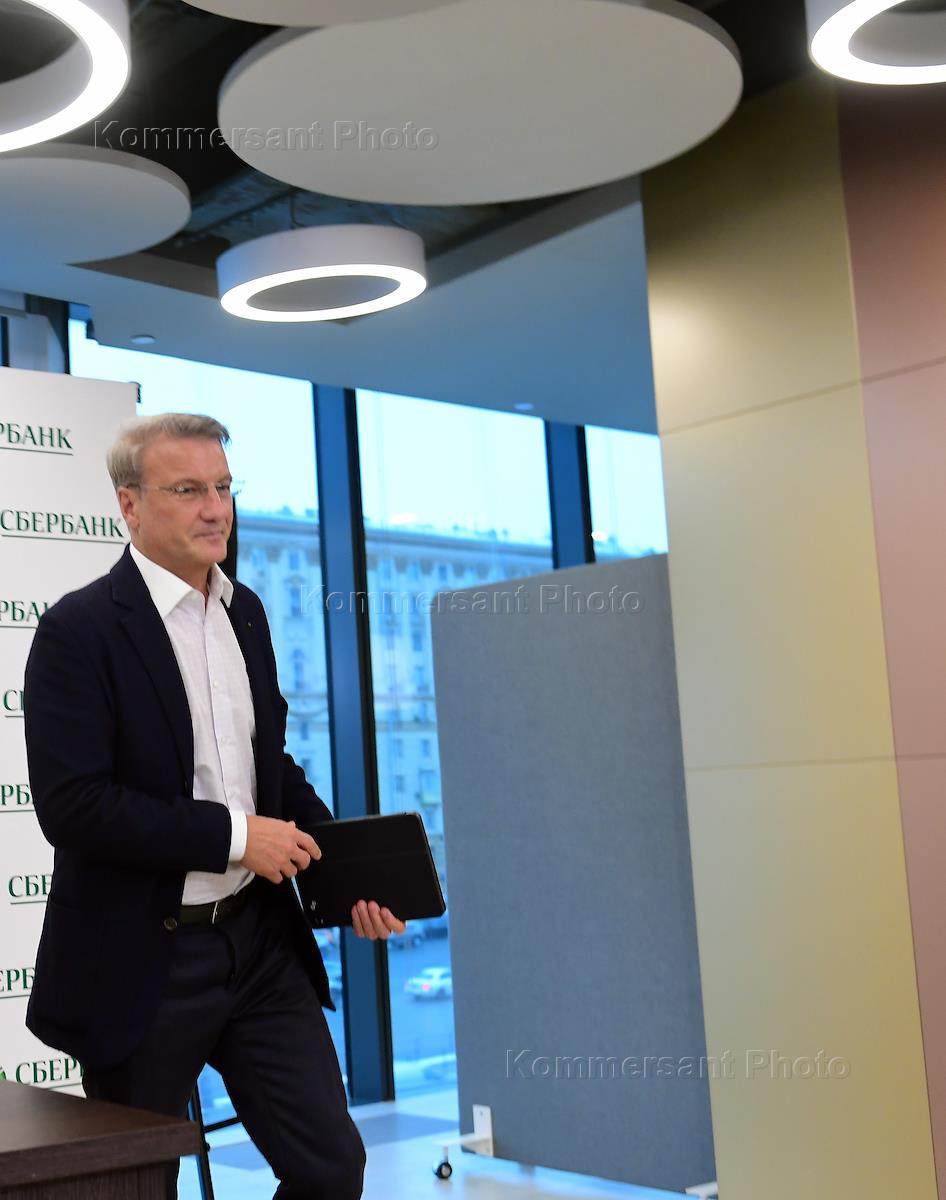 Президент, председатель правления Сбербанка России Герман Греф перед началом пресс-конференции, посвященной заседанию наблюдательного совета Сбербанка России.