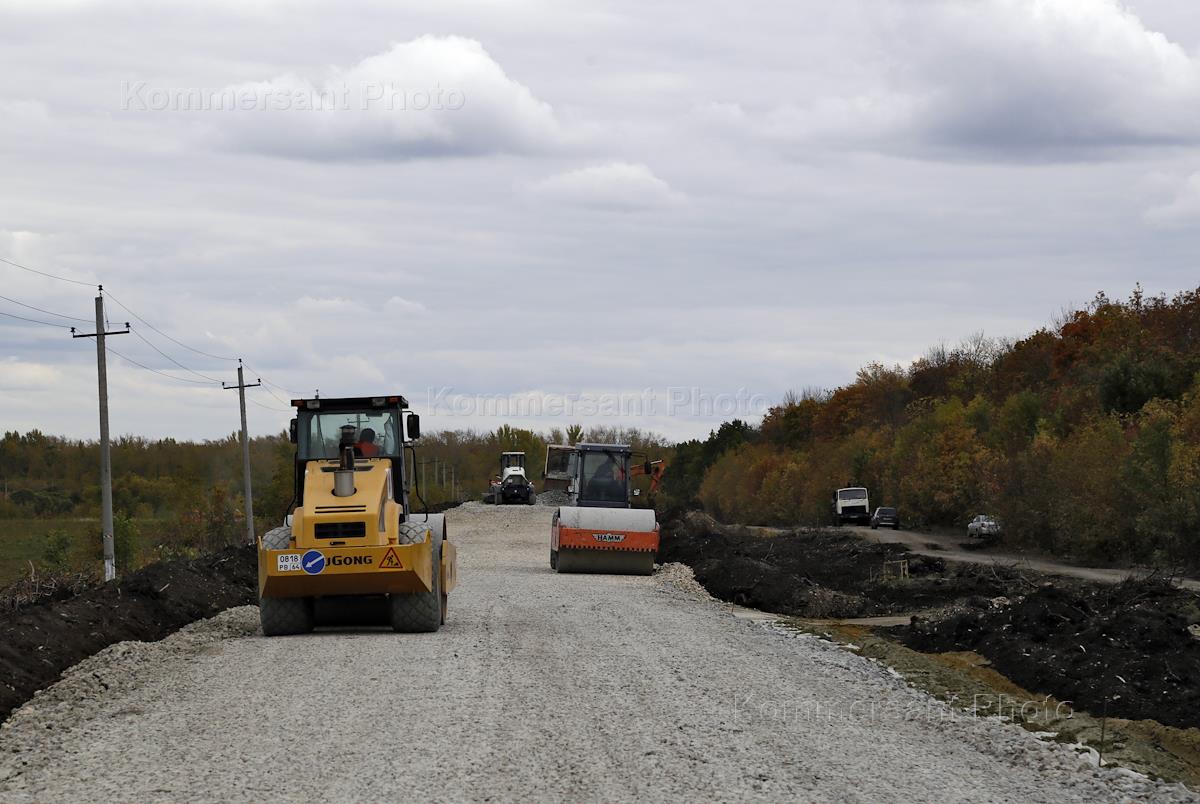 Капитальный ремонт автомобильной дороги "Новые Бурасы - Кутьино - Вязьмино - Петровск" в рамках реализации национального проекта "Безопасные и качественные автомобильные дороги". Дорожная техника на строительстве.