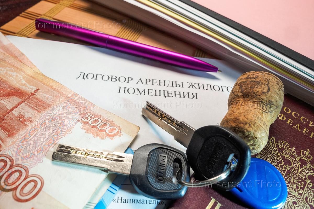 Жанровая фотография. Аренда жилого помещения. Бланк договора об аренде, ключи, деньги, паспорт.