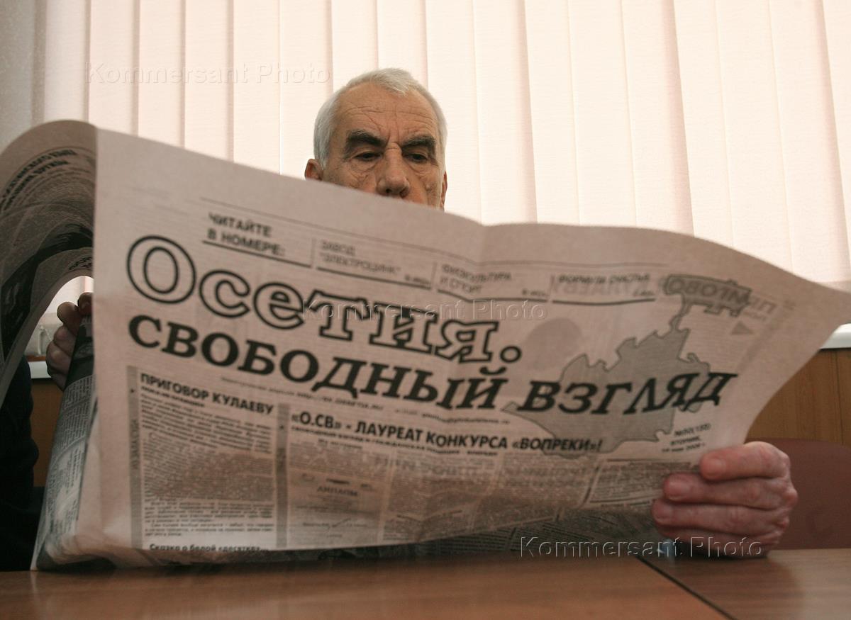Адвокат, представитель в суде комитета "Матери Беслана" Таймураз Чеджемов читает газету "Осетия. Свободный взгляд".
