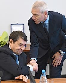 Заседание Исполкома Олимпийского комитета России. Генеральный директор Олимпийского комитета России (ОКР) Владимир Сенглеев (справа) перед началом заседания.