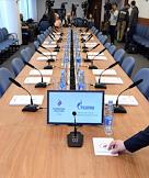 Заседание Исполкома Олимпийского комитета России. Жанровая фотография. Пуcтой стол для заседаний.