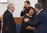 Заседание Исполкома Олимпийского комитета России. президент Федерации фигурного катания России Александр Горшков (слева) и президент Федерации лыжных гонок России Елена Вяльбе (в центре) перед началом заседания.