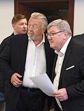 Заседание Исполкома Олимпийского комитета России. Президент Федерации хоккея России (ФХР), член комитета Государственной думы России по охране здоровья Владислав Третьяк (в центре) и первый вице-президент Федерации хоккея России (ФХР), бизнесмен Роман Ротенберг (справа) перед началом заседания.