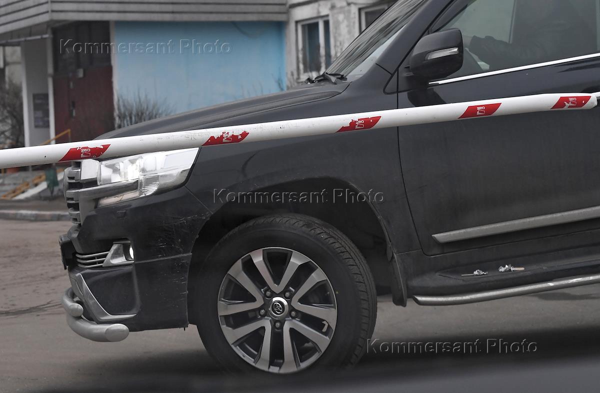Жанровая фотография. Шлагбаум во дворе жилого дома.
