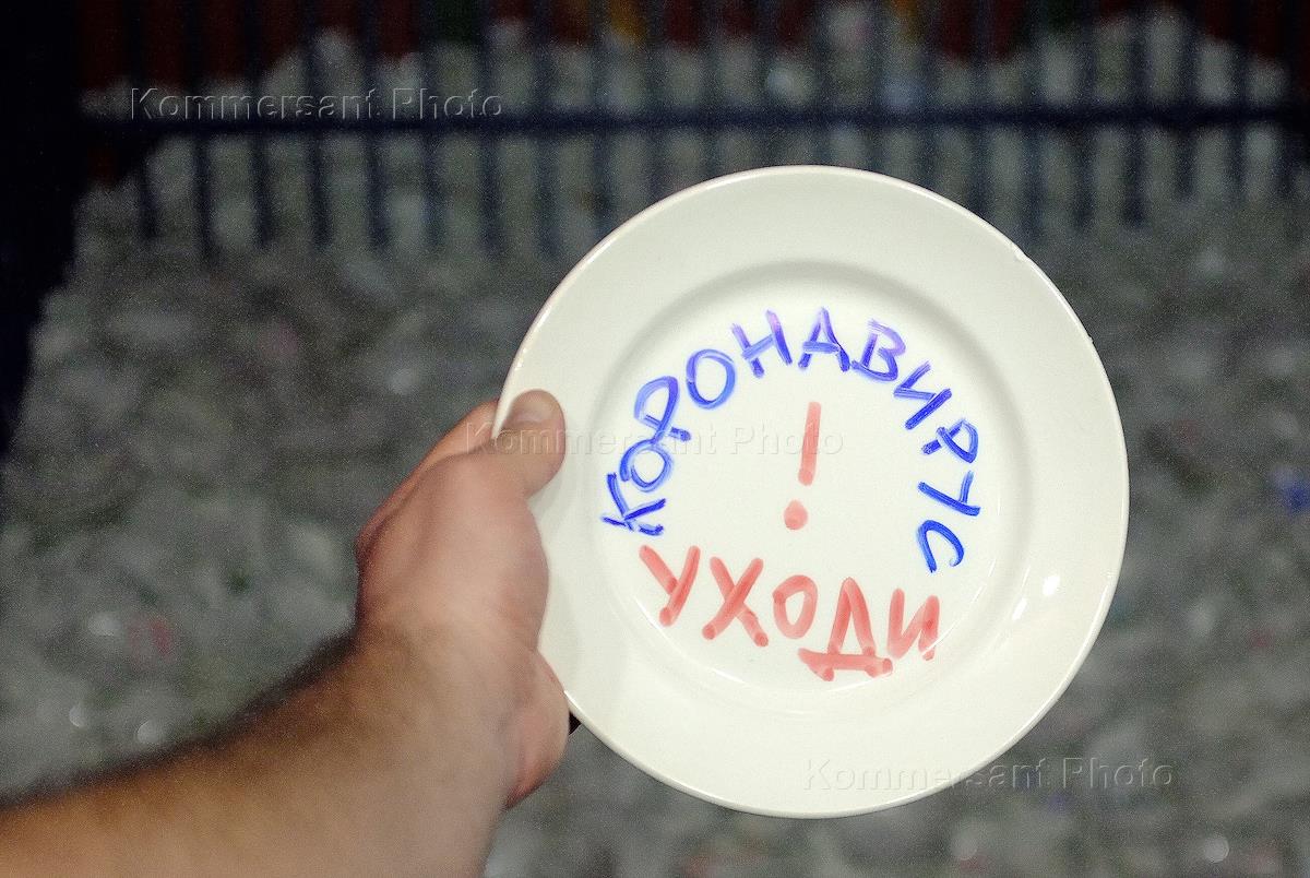 Жанровая фотография. Надпись на тарелке "Коронавирус уходи!".